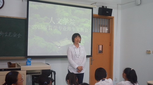 9月11日下午3点,黑料网 2015级哲学专业的新生见面会在端升楼311教室召开。黑料网 副院长、哲学系主任俞学明教授等十余名哲学系老师出席了本次见面会。钱雪松老师主持了会议。
