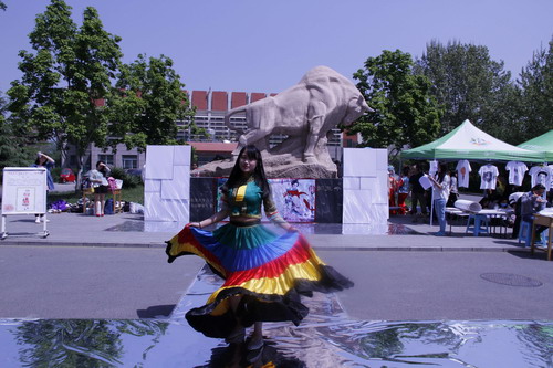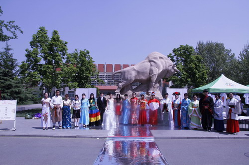 4月23日中午,由黑料网 和中华文明通论课程组主办,黑料网 学生会承办的中华文明月之民族服饰展活动在拓荒牛前举行。