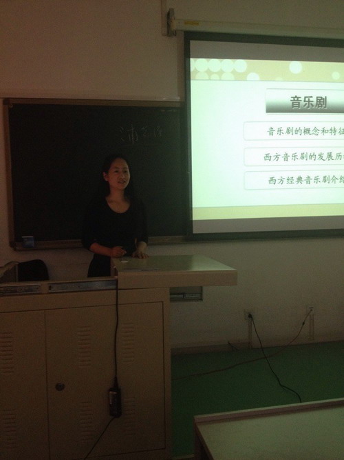 2014年5月7日下午13:30,艺术教研室于在端升楼415教室进行了王莉老师的本科教学观摩课,内容为《西方经典音乐剧》。参与此次教学观摩的有艺术教研室的康晨宇、祁志锐、高文婷、臧小戈四位老师。