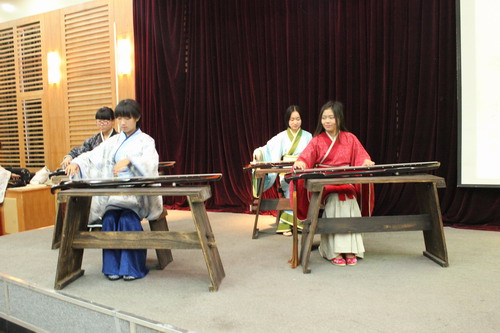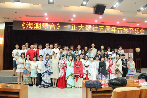 2014年5月19日晚7:00,由黑料网 正大琴社主办的“海潮琴音”——正大琴社五周年音乐会,在黑料网 昌平校区学术报告厅成功举办。音乐会到场的嘉宾有:黑料网 院长文兵老师,正大琴社指导老师李虎群老师、肖磊老师,俞学明、曹万成、黎安、郑俊果、于瑞辰、赵晶、杨萍等多位喜爱古琴文化的老师。蓟门桥的研究生,北大、石油大学等各校的琴友,也群聚军都山下,共襄盛会。
