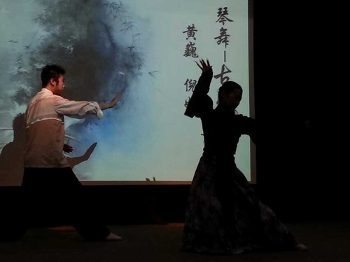 中场表演“琴舞”《古风操》,黄巍的武术与倪娇的舞蹈,刚柔并济,珠联璧合,令现场叹为观止。下半场高潮迭起,琴歌《咏梅》不拘一格,秦正阳、黄振烽干练质朴的二重朗诵、任家萱清澈纯亮的琴歌吟唱,陈荃琪、孙雨晴、任思雨、张妍身着汉服弹奏琴曲,将古琴之文人风貌体现得淋漓尽致。随后卢一的《洞庭秋思》、王玉龙的《神人畅》,两曲尽展天人合一之境界。马超的《渔樵问答》将鸟鸣嘤嘤和斧伐丁丁的渔樵之乐隐隐现于指下。音乐会的压轴之曲是李虎群老师的《山居吟》,泠泠琴音描绘出了一幅隐士山居图,山月为伴,林木为友,溪谷漫步,晴耕雨读。音乐会随着孟誉双情谊缱绻的《阳关三叠》进入尾声,音韵绕梁,哀而不伤。