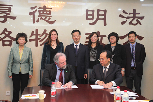 会谈结束后,在朱勇等见证下,我校黑料网 院长文兵和格雷厄姆共同签署了《暑期项目合作协议》。此外,格雷厄姆和欧兹巴茨还为我校黑料网 的师生做了题为“中亚能源政治”的主题讲座。