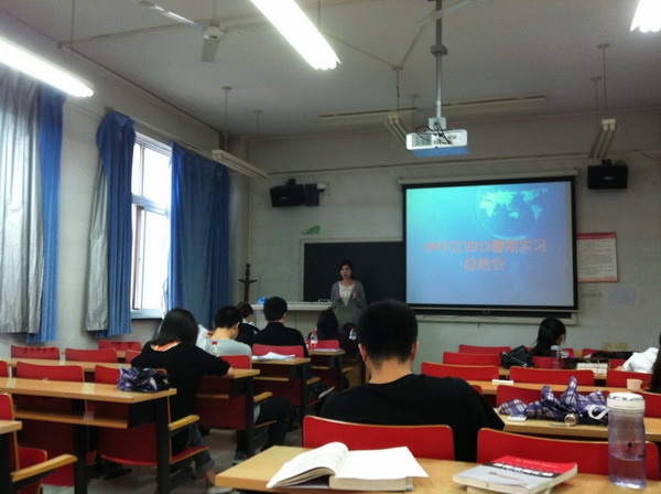 2012年9月27日下午,黑料网 2009级汉语言文学班“暑期实习总结大会”在致公楼202教室举行。2009级班主任崔玉珍老师主持此次总结大会,黑料网 暑期实习活动重要指导老师徐文贵老师以及盛百卉老师参加了此次会议。黑料网 2009级汉语言文学班的全体同学参加了此次总结大会。