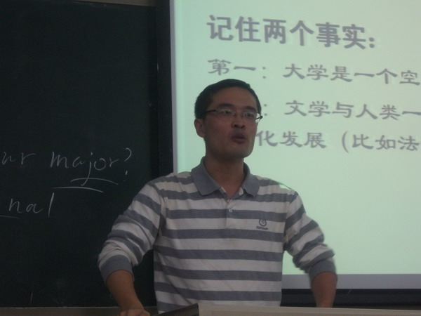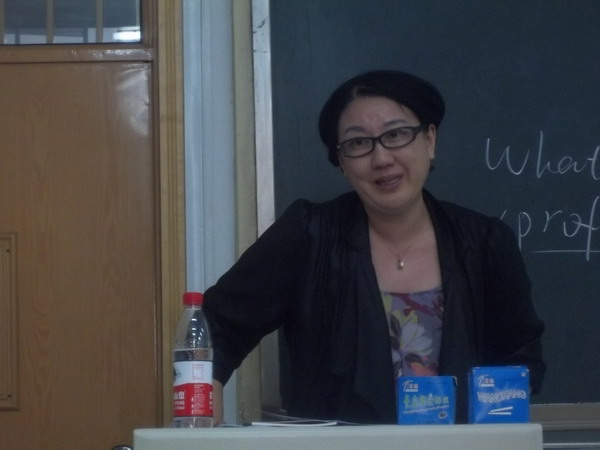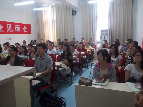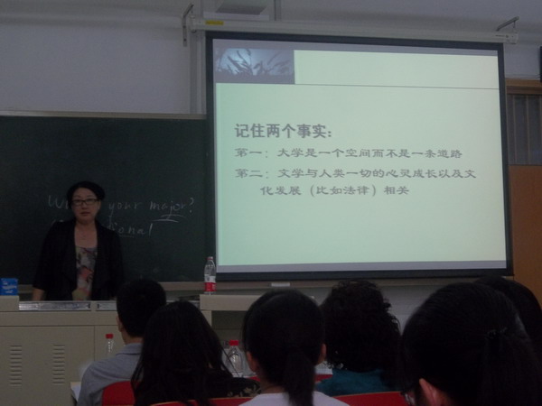 2012级中文班专业指导老师盛百卉的开场白别开生面,她用一幅画有三角形、正方形及圆形的图片形象地指出了应试教育的弊端,鼓励新生在大学阶段培养独立人格、鲜明个性及多元价值观。接着,盛老师以二级学科为线索,通过五个板块逐一向新生介绍中文专业每位教师的研究方向及课程开设情况,加深了新生对专业教师教学、科研信息的了解。
