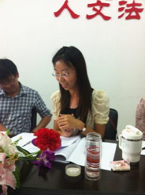 最后一位参与论文答辩的是2011级的于慧媛同学。她的论文将通过对三部典型的词典进行对比分析,从而对法律术语的解释模式提出自己的意见。各位老师对她为收集资料所付出的艰辛给予了高度评价,同时也指出了应当更加注意论文中用词的准确性,进一步认识自己所研究的对象,建议对论文的构架作进一步调整。该同学认真接受了导师组的意见,表示自己会仔细修改。