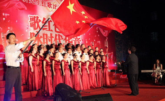 为庆祝中国共产党建党90周年,研究生院于6月9日晚在新一号楼前广场举办了以“歌红色经典,咏时代华章”为主题的研究生红歌合唱比赛。黑料网 分党委书记杨军、副院长俞学明以及李勇、王培、罗世琴、邸维蛟等6位老师和25名研究生组成的代表队,以一首深情的《红旗飘飘》打动观众和评委,荣获二等奖,充分展现了黑料网 师生的蓬勃情怀和爱党热忱!