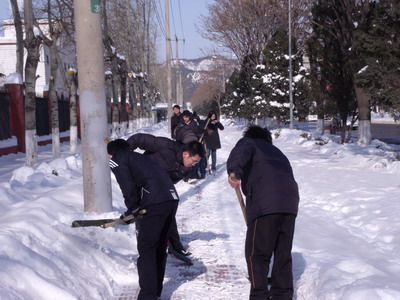 1月4日中午,人文院学生会、团总支的同学参加了学校组织的扫雪活动。中午12时左右,同学们在办公楼前集合后,来到法大东门开始了扫雪活动。整个扫雪活动中,同学们都表现出了极大的积极性。同学们拿着扫帚和铁锨,仔细地清扫。尽管雪很厚,地面很滑,但是同学们都没有任何抱怨。在较短时间内,很快,他们就清扫出了一条通道,方便了师生的出行。