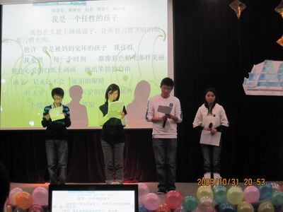 首先尹老师作了简短的发言,她表达了对09级同学们的祝福与期待,并预祝此次晚会成功举办。