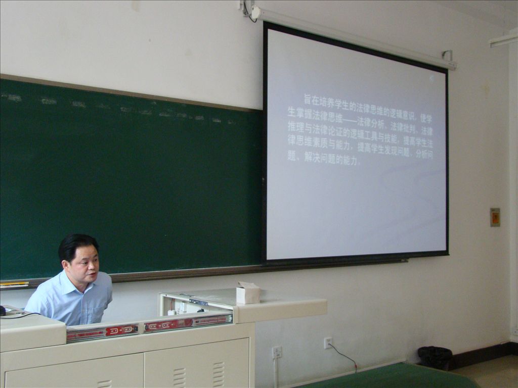 法律逻辑课程负责人王洪教授从课程的整体安排与团队力量、教材编写、授课方式等入手,突出该课程案例教学的特点,结合黄静案、许霆案等典型案例对课程内容进行了演示。