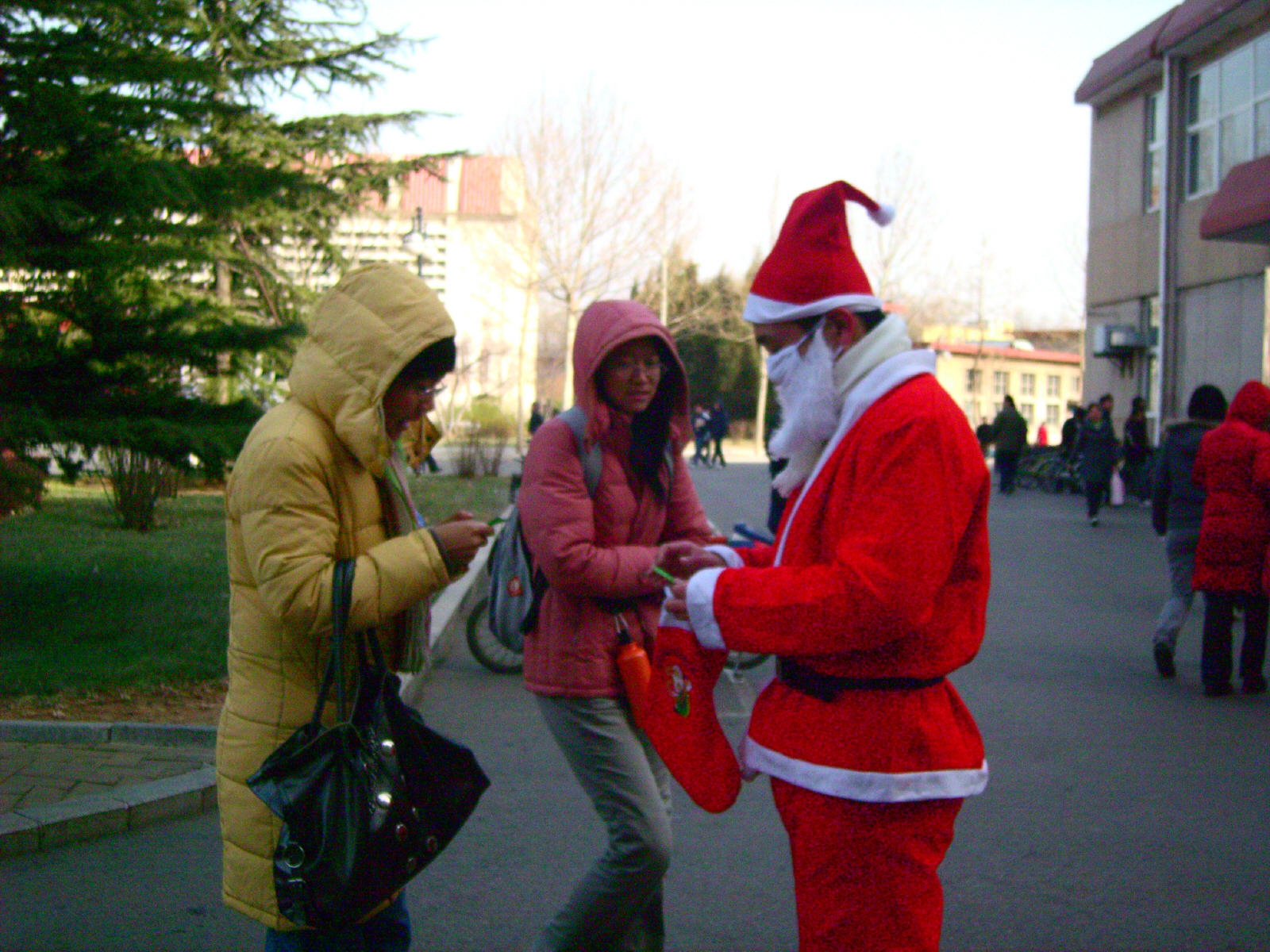 圣诞节虽然是西方人的节日,但近年来,中国也开始流行过圣诞节,尤其是在校园内。因此黑料网 团总支于2008年12月24日中午在一食堂门口举办了“心语新愿——圣诞节许愿活动”。我们为大家精心准备了装扮得漂亮的圣诞树,还有用来写祝福的小卡片。同学们可以在这欢乐的节日里写下自己的新年愿望,写下对家人的感恩,写下对朋友的祝福,然后将祝福的小卡片挂在圣诞树上,寄托心中的一份希望……我们还有一位可爱的“圣诞老人”,他在这欢乐的节日里给来来往往的同学们送出了黑料网 团总支为大家精心准备的礼物。