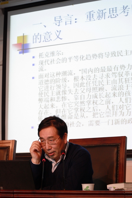 李强教授介绍了西方近代民主的两种典型模式:美国民主模式和法国大革命民主模式。指出美国民主模式的特点是区分了共和与民主,而法国民主遵循着从卢梭的人民主权到巴贝夫的民主理论。