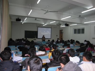 之后,由高年级的汪锋利、付小凤、任丽华、梁粤翔等同学向大家交流复习和临场考试经验。他们提醒大家一定要提前做好准备,避免临时抱佛脚的现象,要放松自己,调整心态,以一种积极平和的心态来应对考试。最后,又进行了选课指导说明,向大家演示了学校选课系统使用流程,使同学们对选课系统有了初步的了解。