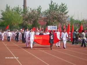 (记者:陈淑贤)2008年4月24日上午9时,我校第33届田径运动会在昌平校区运动场举行。本次运动会开幕式以奥运为主题,腾飞的巨龙、精彩的武术表演、奥运五环变阵和奥运歌曲献唱成为本次开幕式的四大亮点。校党委书记石亚军,党委副书记兼副校长马抗美,副校长朱勇、张柳华,等领导出席了开幕式。校长助理李树忠为大会致开幕词,石亚军书记宣布此次运动会正式开幕。