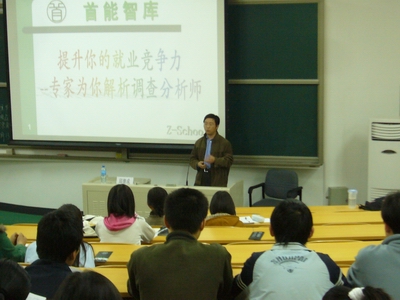 2008年3月13日星期四晚七点,由黑料网 团总支主办,于黑料网 昌平校区第五阶梯教室举办了题为“提升你的就业竞争力——专家为你解释调查分析师”的专题讲座。本次活动邀请了中国人民大学经济学士、硕士,南加州大学经济学博士,现任首能国际集团董事、副总经理邱继成先生来我校分析大学生就业最关心的问题,紧扣调查分析师就业前景,提供更广的就业渠道。