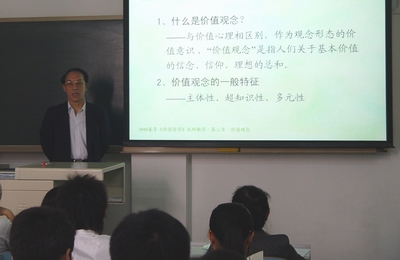 在今天的《价值哲学》专业必修课上,李德顺教授重点讲授了“价值观念的一般构成”。承接着上一次课对价值观念的本质、特性所作的归纳和概括,李德顺教授重点从主体意识、理想信念、规范意识、实践意识和本位意识等五个方面来探讨价值观念的外延。在授课过程中,李德顺教授深入浅出,以问题带入,用平实的语言娓娓道来,时不时地引入平易幽默的比喻,在缜密的理性思辨中增加几分生动,启发学生的智慧,促进学生的思考,受到学生和观摩教师的好评。