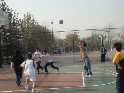 体育活动月男篮决赛在大二新闻联队和大四联队之间展开。