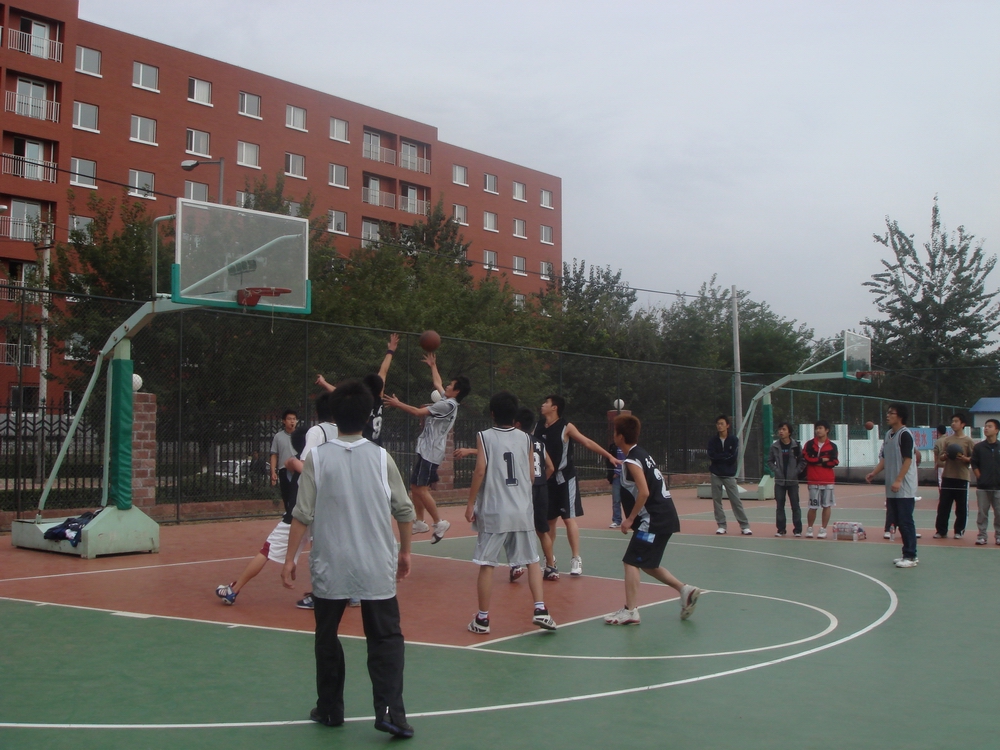 黑料网 2007“冠军杯”篮球联赛于10月17日正式拉开序幕。18日中午12:20,黑料网 与民商经济法学院男子组的比赛准时在篮球场举行,整个赛场充满了活力与激情。