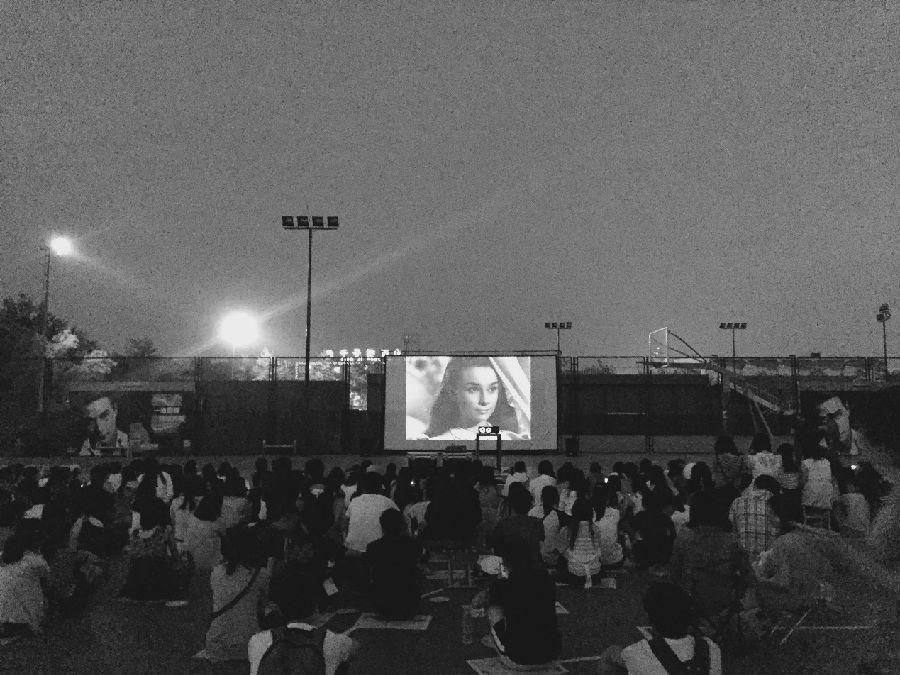 19时许,操场上已有观众入场。虽然天气炎热,但也无法阻挡大家的热情。细心的工作人员为观众准备的小凉扇、花露水、报纸坐垫等周到的服务也让人心生感激。延续去年《魂断蓝桥》的风格,今年露天电影展映定片《罗马假日》,形式复古,富有回忆性。不仅吸引了心怀浪漫的校园学子,更吸引了许多爷爷奶奶一起走进校园,搬一把板凳,回忆往昔。望着操场上的每一个面容,许多同学老师不禁感慨道:“这真的是小时候的情怀啊。”