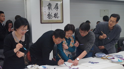 (秦栋先生指导师生写意葡萄绘画技巧 摄影:周佳昕)