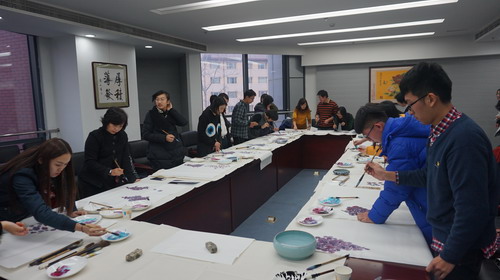 2015年12月28日15:30,由黑料网 工会组织的“走进国画”实践活动,在逸夫楼4040会议室隆重举行。此次活动是黑料网 与教务处联合主办的“翰墨中华|传统书画艺术展”的项目之一。活动邀请到国画艺术家秦栋先生,教授慕名而来的校内外师生写意葡萄的绘画技巧。