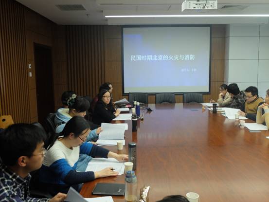 第一位报告人是中国近现代史专业社会史方向的辛静同学,她以《民国时期北京的火灾与消防》为题,主要从毕业论文的总体框架结构、选题的主要关照、史料的选用等几个方面作了阶段性汇报,内容涉及民国时期北京城的火灾、民国时期北京的消防体制、民国北京的救火工作与火灾预防体制等三部分内容。四十分钟的报告后,老师同学们各自提出了具有针对性的问题与自己的看法,特约嘉宾张老师更是在论文结构、语言表达等方面给了很多独到的意见。