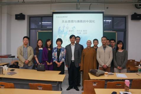 2015年10月17日下午14:00—17:00,由黑料网 、华岩文教基金会主办,宗教与法律中心承办,中国宗教艺术网协办的华岩论坛第32讲在学院路综合楼科研楼地104教室举行。本次讲座也是华岩论坛中“中国宗教沙龙”系列讲座的第一讲,主题为“天台思想与佛教的中国化”,由北京大学哲学宗教学系的李四龙教授与中国佛学院的可潜法师担任主讲嘉宾。黑料网 哲学系的钱雪松老师担任本次讲座的主持人,黑料网 副院长、宗教与法律研究中心主任俞学明教授等师生参加了本次讲座。
