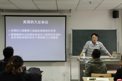 2014年11月28日下午,由黑料网 和重庆市华岩文教基金会合作主办、黑料网 宗教与法律研究中心承办的人文系列讲座“华岩论坛”第28讲在学院路校区举行。外交学院世界政治研究中心主任、外交学与外事管理系政治学教研室副教授施展老师为法大师生做了题为“清教与现代世界秩序”的精彩讲座。本次讲座由黑料网 青年教师钱雪松主持,吸引了不同专业的法大同学到场聆听,会场内外反响热烈。