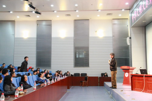 在一段幽默风趣的寒暄语后,王教授娓娓道来。何为经典?他指出,秦皇汉武等历史名人都将随时间淡去,而经典却永远不会远去。经典是一种设计,是一种生命典范。他以《诗经》和《周易》两部经典为例,阐发生命与经典的关系。