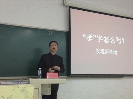 中华文明大系第40讲暨黑料网 首届中华文明月之中华讲坛第四讲“发现新孝道”于2013年4月26号晚7点在黑料网 端升106室如期举行。本次讲座由朱翔非老师主讲,中华文明通论课程负责人之一赵晓华老师主持。朱翔非先生为北京师范大学历史学博士,博士后,现任国务院参事室中国国学研究与交流中心学术处处长,北京师范大学兼职教授,主要研究先秦史,出版有《新孝道》等著作,多年来致力于中国传统文化的推广。