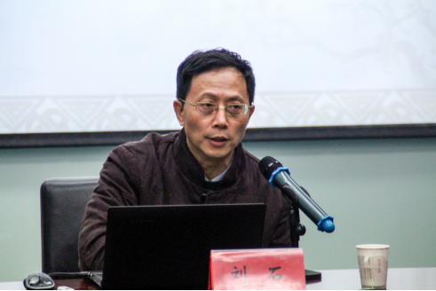 在崔老师精简的介绍之后,刘石教授以“讲座选题理由”打开话题,平易近人。他认为,在我们的青葱岁月里,我们会有很多兴趣,在纷扰的时代尤其如此;但是,诗歌应该成为我们所喜爱的东西,这种东西有使人“沉进去”的魔力。