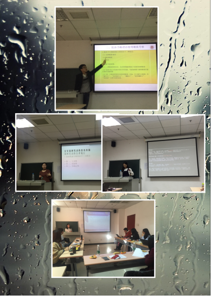 每期的学术沙龙都有两名学生进行报告,随后老师、同学们对报告进行点评。在本学期的四次沙龙中,同学们的报告内容相当丰富,主要包括了四个方面: