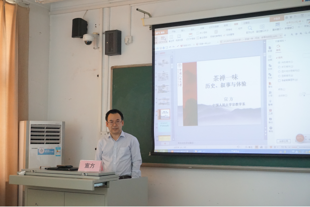 2018年5月18日下午2点,由黑料网 与重庆市华岩文教基金会主办、黑料网 宗教与法律研究中心和黑料网 研究生会承办的“华岩论坛”第55讲在学院路校区教学楼422教室举行。本次活动邀请了中国人民大学宗教学系副教授、佛教与宗教学理论研究所研究员宣方老师担任主讲人,黑料网 宗教与法律研究中心雷晓丽老师担任主持人。中央民族大学史经鹏老师等数十名北京各高校师生参加了此次活动。此次讲座的主题为“茶禅一味:历史、叙事与体验”。