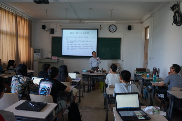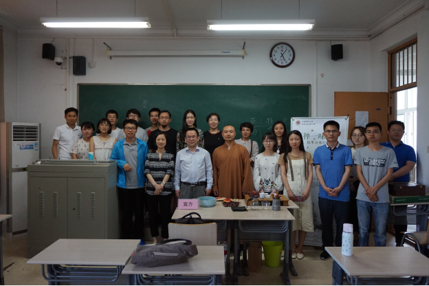 首先,宣方老师指出,传宋僧圆悟克勤为日僧写“禅茶一味”只是一个传说,无论“禅茶”还是“茶禅”都是中国古书中没有的概念。宣老师在梳理日本禅茶思想形成的历史过程后,指出“茶禅一味”一词为晚近从海外引入的概念而非宋代古物。千宗旦所著《茶话指月录》(1640)中所提出“茶道的根源即禅”,可视为日本禅茶思想形成的标志。而日本江户末期刊行的《禅茶录》(1828)提出的“茶意即禅意。离禅意既无茶意,不知禅味亦即不知茶味”则进一步明确了茶味与禅味的统一。明治38年(1905)出版的田中仙樵编的《茶禅一味》一书中,“茶禅一味”一词首次以固定形态出现。接着,宣方老师结合蕅益大师《题玉浪施茶册》等著述,介绍中国佛教史中的茶文化叙事,表明茶在中国佛教史上有其实用性的维度,“学禅,务于不寐,又不夕食,皆许其饮茶;人自怀挟,到处煮饮,从此转相仿效,逐成风俗。”最后,宣方老师简要介绍了借茶演禅的方法,并与在座师生展开充分的讨论。
