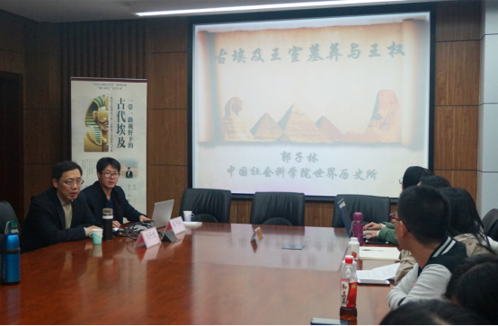 在交流提问环节,郭子林老师就古埃及文明的消亡、王位继承方式、圣书体文字演变等问题与在座老师学生们展开充分讨论,讲座在热烈的氛围中圆满结束。