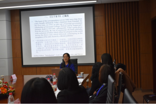来自黑料网 的潘珊老师从文学角度探讨了论奈保尔《父子家书》中的文化身份,发现研究此书的人寥寥无几,潘老师聚焦于书中奈保尔及其家人的阅读谱系与他早期文化身份认同之间的微妙关系,从一个全新视角展现了文学中语言与文化的之间的建构关系。