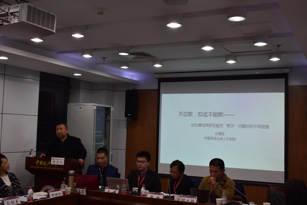 苏州大学政治与公共管理学院周可真教授做了题为“论现代‘德治’何以可能”的主题报告,他认为“德治”原是中国先秦儒家在当时历史条件下所提出的一个政治主张,至唐代乃成为中国传统政治领域公认的治国良方,其以“以德治心”和“以礼治情”之互相结合为基本特点。在“依法治国”成为我国政治文明建设的一项基本国策的今天,应积极推动传统“德治”的创造性转换和创新性发展,使之变成“依德治法”和“依法治国”互相结合的现代“德治”。中国人民大学国际关系学院政治学系任锋教授以“德治何以可能——以治体思维为视角”,做了发言。任教授指出“治体”涵括了治道、治人、治法的三要素结构,治体论自贾谊至晚清转型不断演进,这一传统为我们审视德治理念及其系统条件提供了极为关键的思维论域。山西省社会科学院的宋大琦副研究员以“孟荀法政思想的不同方向”为题作了报告,探讨了孟子和荀子对孔子礼法思想在仁与礼、欲与矩不同向度上的发展。来自清华大学哲学系的唐文明教授则以“现代儒学与人伦的规范性重构——以梁启超《新民说》中的公德私德论”为题作了主题发言,唐教授以梁启超《新民说》为切入点,分析了梁启超的致思方向及其对现代民族国家与公民的看法。梁氏认为中国过去只讲私德而无公德,导致国民团体素质较低,公民的独立、自主、自由等基本权利也无法实现,并援引耶林的观点,认为权利不是个人利益的争取而是个人人格的集中体现。