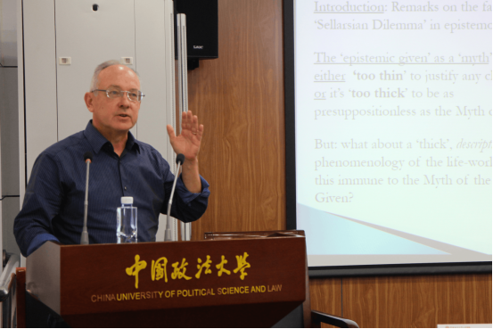 18日晚6点,学术研讨正式开始。当晚,著名现象学家、分析哲学家,来自加州大学欧文分校的David Woodruff Smith教授首先发表了题为“现象性、内觉知和所予”(Phenomenality, Inner Awareness, and the Given)的主旨演讲。