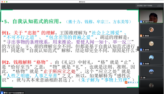 2020年6月23日晚7点至9点,黑料网 哲学系主办、宗教与法律研究中心承办的题为“五大认知范式与20世纪中国传统哲学”的讲座在腾讯会议平台以线上直播的方式成功举办。本次讲座由南京大学二级教授、博士研究生导师、江苏省儒学学会常务副会长李承贵教授担任主讲人,由黑料网 宗教与法律研究中心主任俞学明教授主持,由副主任李虎群副教授评议,来自各个院校的众多师生共同参加了本次线上讲座。