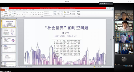 2020年6月29日晚,黑料网 名家论坛第246讲顺利举行。受新冠肺炎疫情影响,本次讲座在腾讯会议云端进行。本次讲座的主题为“‘社会世界’的时空问题”,由中山大学哲学系学术委员会主任、中国哲学史学会副会长陈少明教授担任主讲人。