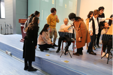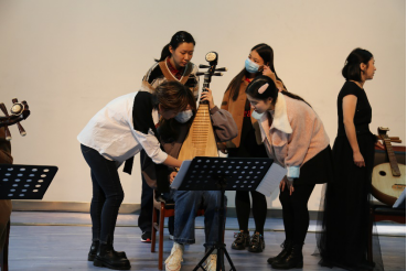 之后,孙铮老师依次介绍了柳琴、琵琶、中阮、大阮的发展历史,并分别邀请其他三位老师进行了一小段演奏。通过演奏不同的音乐,将同学们从旷远的茫茫沙漠带到烟雨朦胧的江南水乡,跨地域领略国乐之美。随后,孙老师邀请同学们上台近距离与乐器接触,并亲自走到台下回答同学们的问题,在与老师们的亲切交流中,同学们学到了丰富的乐理知识。