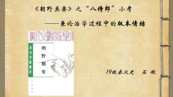 第一位报告人是黑料网 中国古代史专业2019级硕士研究生石佩,他报告的论文是《〈朝野类要〉之“八侍郎”小考——兼论治学过程中的版本情结》。论文从《朝野类要》中的“八侍郎”这一文本问题出发,比较不同版本,进而考察“八侍郎”的真实存在问题,并因此讨论宋史学家王瑞来先生的版本情结。黑料网 中国古代史专业2020级硕士研究生张香萍对论文进行评议,交流读后心得。