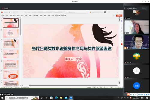 艾尤教授的分享围绕“当代台湾女性小说的身体书写与女性欲望表达”展开,以台湾地区当代女性小说创作中借身体书写传达女性欲望的显著特点为核心,透过李昂、朱天文、苏伟贞等女性作家笔下不同形式的欲望表达,关注文学作品中凸显的女性文化诉求,进而探讨区别于“正统写作”的“另类”女性话语所揭示的性别政治中权力问题的复杂性。