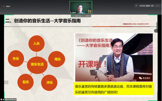 在谢嘉幸教授精彩的讲座后,康晨宇老师对谢嘉幸教授老师从事高校音乐教育事业的大爱和情怀表达了敬意,并对谢嘉幸教授在音乐教学的深化与改革以及高校如何传播传统音乐、如何更好地将艺术性、科学性融合方面作出的突出贡献与指导表达了由衷的感谢。康晨宇老师认为这场精彩的讲座从大学生的生活出发,深入浅出地讲解了音乐在大学生生活中的重要作用,对美育思政课程的设置与开展也有重要的指导意义。