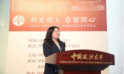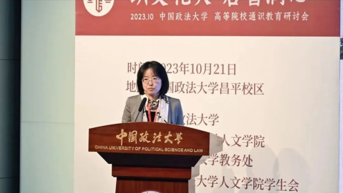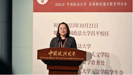 然后是北京外国语大学教务处副处长田小惠以《守正创新:新文科背景下北外通识课程体系的构建》为主题进行发言。她阐释了北京外国语大学在新文科建设的背景下,以“7+1”通识课程模块为主体,构建“国内跨校互选+国际暑期课程”为两翼的具有北外特色的通识课程体系。