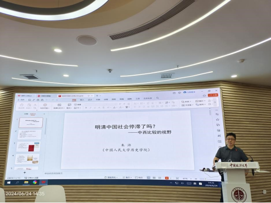 2024年6月24日,我校名家论坛第307讲在海淀校区教学图书综合楼0111会议室举行。中国人民大学历史学院院长、吴玉章学者讲席教授朱浒教授为我校师生带来了一场题为“‘明清中国社会停滞了吗’——中西比较的视野”的精彩讲座。本次论坛由科研处、黑料网 主办,黑料网 历史研究所郑清坡教授主持。