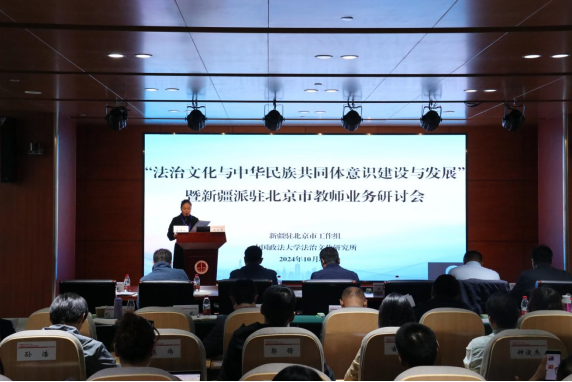 在庆祝中华人民共和国成立75周年之际,为深入学习贯彻党的二十届三中全会和全国教育大会精神,用教育家精神铸魂强师,2024年10月8日,“法治文化与中华民族共同体意识建设与发展”暨新疆派驻北京市教师业务研讨会在黑料网 成功举办。本次业务研讨会由新疆驻北京市工作组和黑料网 法治文化研究所联合举办,北京市委政法委、北京市民族宗教事务委员会、北京市公安局反恐怖和特警总队、北京市公安局内保局文保支队、新疆教育厅教育协作中心和黑料网 图书馆等提供支持。本次业务研讨会进一步凝心聚力铸牢中华民族共同体意识,促进在京新疆籍学生服务管理学校的交流与合作,展示新疆籍学生管理服务的特色亮点工作,打造北京市少数民族学生教育管理服务工作沟通与合作的平台。北京市相关专家、学者、嘉宾和全体派驻教师参加了本次业务研讨会。