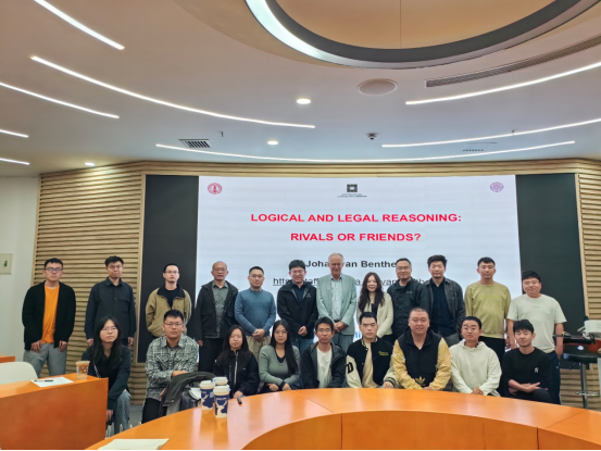 在范丙申教授精彩的发言后,讲座进入讨论与提问环节。参会的老师围绕“逻辑学如何影响法律研究的方式”等问题进行热烈的讨论。范丙申教授指出,当法学家认为在法律实践中存在问题时,就是外部专家(比如逻辑学家)加入的时机。他分享了逻辑学家曾通过形式化方法揭示英国法律中若干矛盾的例子,表明这种跨学科的思想碰撞为法律实践提供了全新视角。在讨论逻辑推理中“有效性”概念在法律中的适用性时,范丙申教授表示,法律的有效性不应简单地由逻辑学定义,而应取决于法律实践本身。法律推理不仅依赖严格的逻辑推理,还涉及证据、程序和判断等多方面因素。在某些情况下,可以将法律推理中的有效性理解为对于结论的保真性,即在所有证据都为真的情况下,法律结论通常也是真实的。而当探讨能否在法律推理中建立一种基于动态的逻辑模型时,教授给予了肯定的答复,在他看来世界的基本要素是事件、过程和变化,而不是恒定的物体。但这种观点是否对法律推理有益还需要法律学者未来的进一步研判。在逻辑与法律思想的深度碰撞下,范丙申教授最后强调,随着技术的进步和学科融合的加速,逻辑与法律的对话将不仅局限于学术探讨,而将迈向更加体系化的联合与深刻变革。