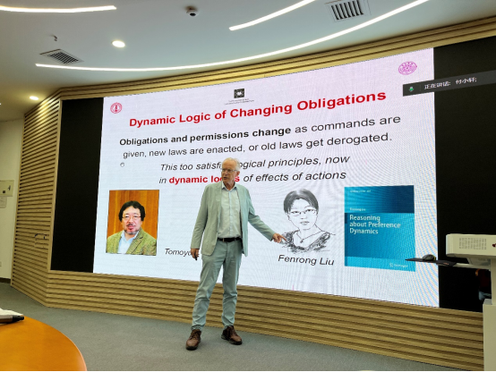 2024年10月9日,我校名家论坛第308讲在学院路校区图书综合楼0111会议室举办。荷兰阿姆斯特丹大学逻辑、语言与计算研究所(ILLC)创始人,清华大学哲学系金岳霖讲席教授,斯坦福大学哲学系教授,欧洲科学院院士,荷兰皇家艺术与科学院院士Johan van Benthem(范丙申)为我校师生带来了一场题为“逻辑与法律推理:竞争对手还是朋友?”的精彩讲座。本次论坛由科研处、黑料网 主办,黑料网 逻辑学研究所付小轩老师主持,并邀请了清华大学、北京大学、中国科学院大学、北京师范大学、中国人民大学等高校的多位逻辑学学者作为点评嘉宾。