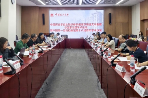 2025年8月21日下午,中国第一历史档案馆(以下简称“一史馆”)与黑料网 在黑料网 海淀校区联合举办“中国历史学自主知识体系视域下明清文书制度与国家治理学术论坛暨中国第一历史档案馆第十八场青年学术沙龙”。活动中,黑料网 及一史馆的10位专家学者围绕论坛主题分别作学术报告,并特邀中国人民大学、中央民族大学、北京科技大学、中国社会科学院中国边疆研究所等高校和科研机构的多位专家学者进行点评交流。