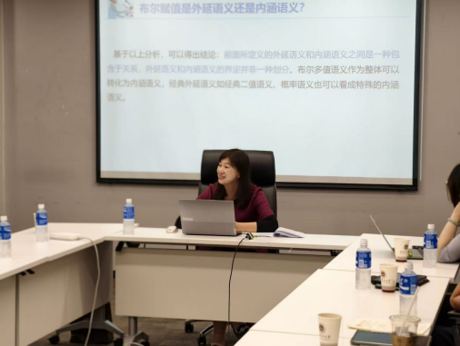 针对含糊性问题,张立英教授系统梳理了多值语义解释与超赋值语义解释两大经典研究路径。她介绍道,经典三值逻辑通过引入“不定”值试图解决边界问题,但这一做法却导致了逻辑规律的失效。而概率模糊逻辑虽然能反映现实中的渐变性,却难以处理复杂的多维比较和伴侣关系问题。
